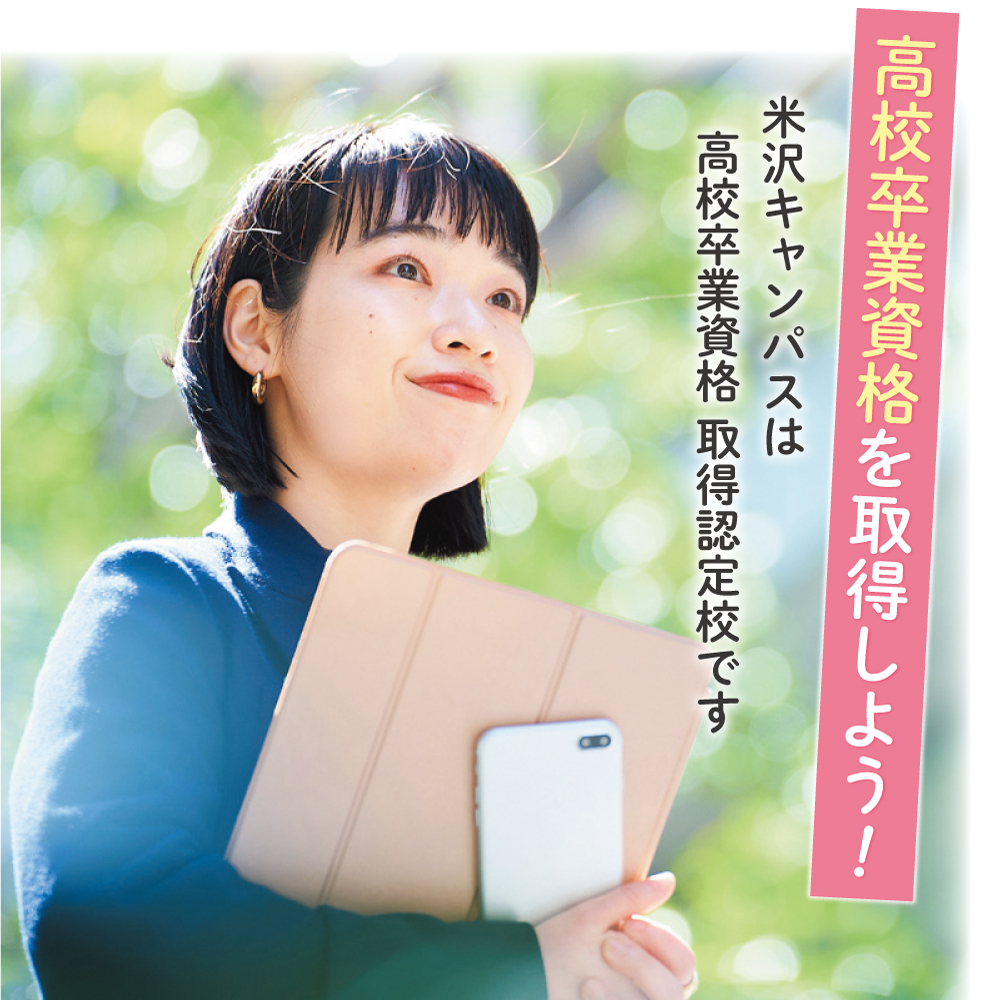 独自の個別指導方法で高校生活をたのしみながら、「高校卒業資格」に必要な学びを米沢で取得。そして卒業証書をゲットしませんか、キミの夢に向かって羽ばたくために。